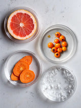 Eau, eau de pamplemousse, huile de tournesol nourrissante, émulsifiant végétal, glycérine végétale hydratante, ingrédient adoucissant issu de l'huile de coco, huile d'argousier revitalisante, conservateur, extrait de carotte riche en vitamines, épaississant naturel, parfum, senteur naturelle d'agrumes (limonène), acide hyaluronique hydratant, acide citrique pour équilibrer le pH, texturant naturel, conservateur, huile essentielle de citron, extrait de vigne aux propriétés antioxydantes, extrait de fruit de gardénia (colorant naturel), senteurs naturelles fraîches et florales (pinène, acétate de linalyle, citral).